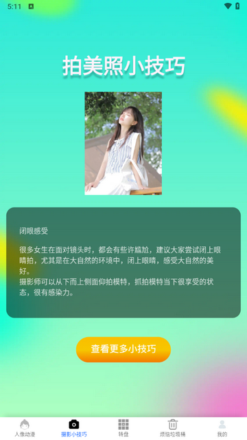 4、学习拍照技巧,了解拍照的摆拍方式方法,拍照更唯美;