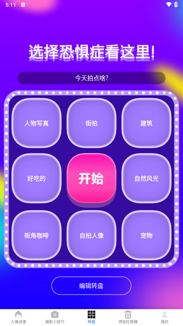 支持转转盘,可以自定义转盘内容,增加使用的趣味性;