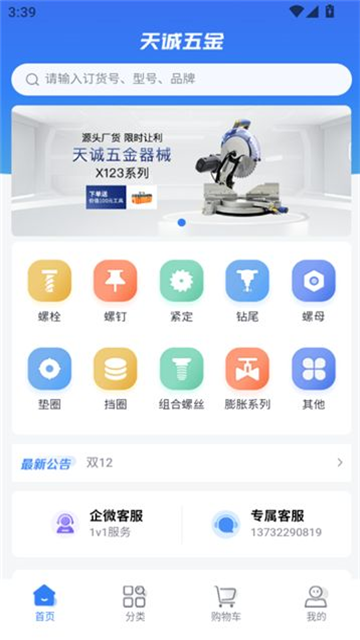 可以在搜索栏输入品牌、型号等搜索你想要的各样五金商品。