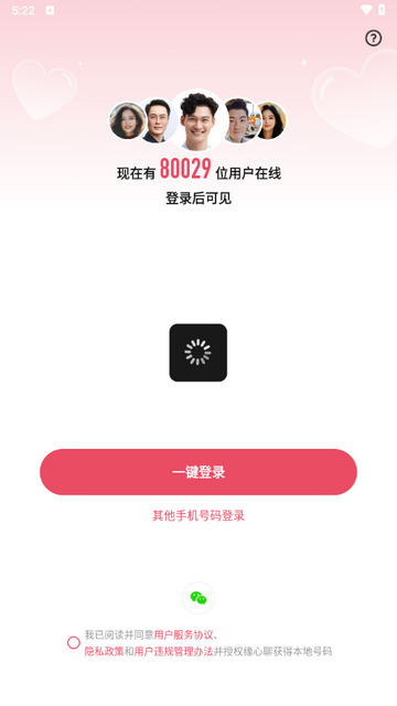 1、下载缘心聊app进入软件,注册登录后查看在线的人;
