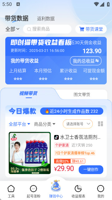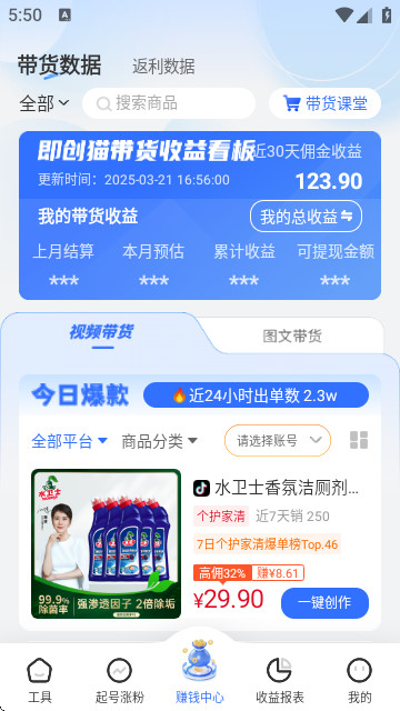 1、这里能够简单高效的创作短视频,让你可以一键完成带货短视频,赚取更多的收益。