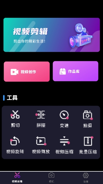 剪辑视频王app软件是一款提供专业视频剪辑工具的软件,软件中的视频剪辑工具丰富全面,可以让用户随时在线轻松剪辑制作视频,还提供有相机工具可以高清拍照,将生活中的美好瞬间通过拍照捕捉记录,同时还可以利用相机拍摄你想要的各种视频素材。