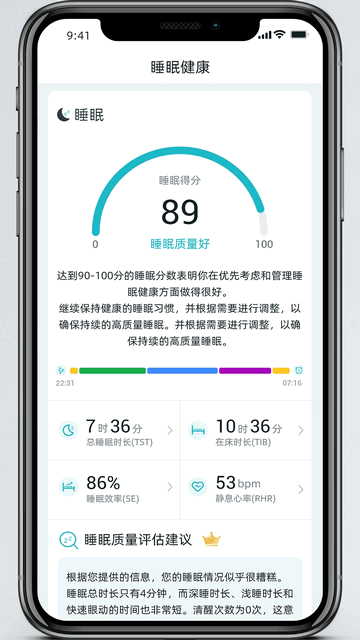 1、查看详细的睡眠数据,了解深度与浅度睡眠情况。