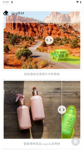 jpgRM APP是一款功能非常强大专业的AI橡皮擦软件,能够智能对图片中多余的部分进行智能擦除操作,消除图像中不需要的画面以及水印等等,处理起来非常的简单高效,为大家提供一个十分出色的图像擦除编辑使用服务,有需要的话快来下载吧!