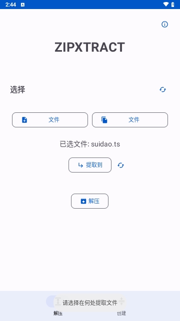 ZipXtract是一款手机解压软件,这款软件所提供给大家解压缩功能服务是非常不错的,大家可以随意的来这里开启解压缩使用操作,上手起来非常的简单,无需注册登录,大家打开就可以直接使用到,界面也是十分的简洁干净,没有任何多余的功能打扰大家。