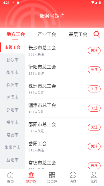服务号开设:为各级工会提供服务号开设和管理功能。