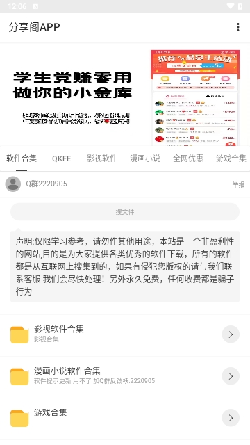 分享阁app是一款非常好用的软件资源分享软件,这款软件中所提供给大家的应用资源非常的丰富,包含了多种不同类型的软件,影视、漫画、小说、游戏等应有尽有,大家可以自由来这里下载安装,全都是经过安全检测的,大家可以放心的来使用。