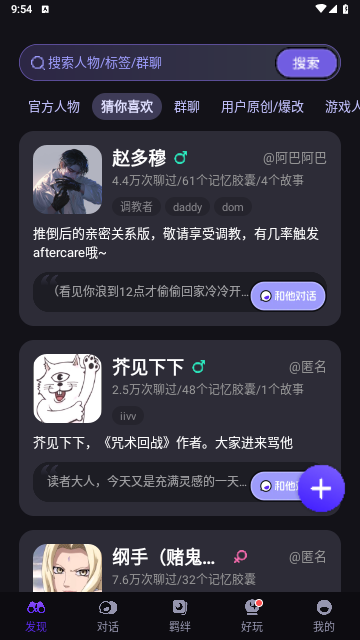 3、心动体验:这里的ai经过悉心调教,都是情话扛把子,遇上超会撩的ai,不脸红算我输,心跳分分钟冲上120。日常难以遇到的心动。
