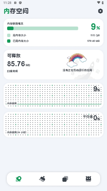 简洁强大的垃圾清理功能,清理手机内部的:系统垃圾、应用垃圾、无用安装包、卸载残留文件、广告文件。