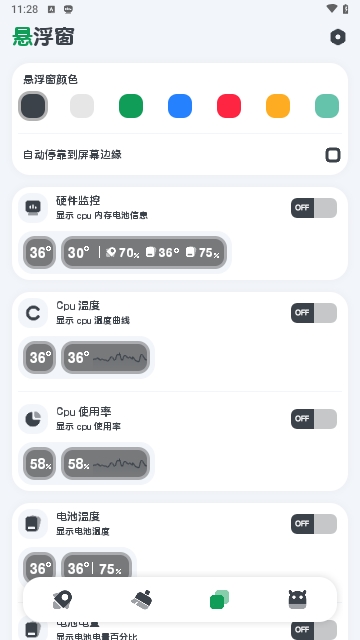 桌面悬浮窗和状态栏悬浮窗实时展示CPU温度、电池温度、内存使用率,强大又方便,实时信息想看就看。