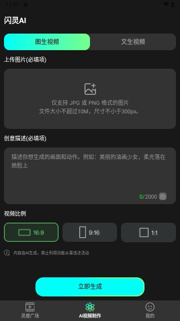 闪灵AI是一款非常简单好用的AI视频创作工具,这款软件中为大家提供的相关AI创意服务是非常不错的,可以通过AI智能技术快速完成视频的生成服务,操作起来非常的简单,还可以选择不同视频画面比例生成使用,操作简单方便好用。