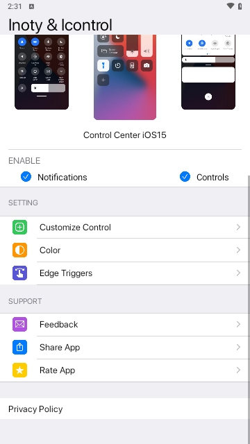 iControl&iNoty iOS15是一款免费好用的安卓系统仿IOS15界面的软件工具,让你可以享受和IOS15一样的系统界面使用效果,带给大家一个全新的手机桌面交互使用体验,操作起来非常的简单轻松,调节设置起来十分的简单轻松可靠,需要的话快来试试吧!