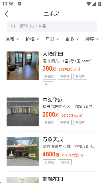 丰富多样的房源类型,覆盖诸多区域和各种房型,可任由用户在线查找自己喜欢的房源,并能直接在线详情了解房源信息,知道房源单价、面积、朝向以及年限等,以便能选择性预约顾问带看,考察房源详情,便于能对比选择喜欢的房源入手;有需求的伙伴欢迎在线下载长昇置业官网版软件使用,享受更加贴心便利的找房买房服务!