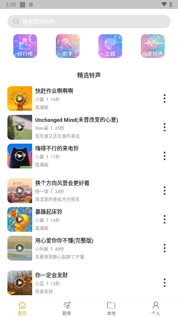 2、为用户提供大量铃声可供选择,是获得个性化手机铃声的便捷渠道。