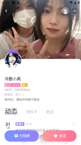 Uki是一款功能十分强大的聊天软件,不仅能够看到用户的信息资料还有用户的交友宣言,不仅有交朋友的还有找对象的,能够满足不同用户的需求,非常多有优质有好看的小姐姐在线交友,填满用户深夜空虚的内心,独特的人工智能能够更加了解用户的内心。