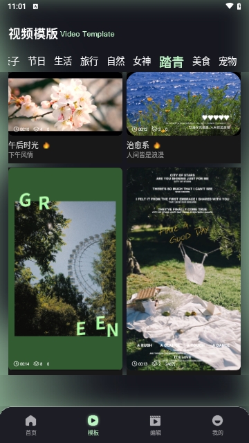 多种视频模板的主题分类,可以让用户获取到多种风格类型的视频模板资源。