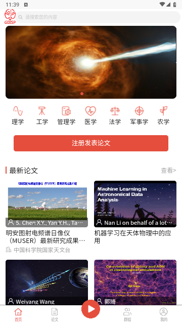 科研圈:用户可以组建或加入自己的科研圈,提高科研团队内部交流讨论的效率,提供线上的学术交流与管理平台。