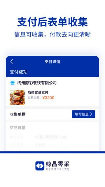 平台还支持用户实现线上的大额支付,你可以轻松的大额付款,随时保障自己的支付安全,有效提升财务对资金的管控,保障交易的安全。此外,鲸晶零采最新版还支持用户对支付后的表单可以一键收集起来,轻松进行支付管理,有需要的用户就赶紧来本站下载使用吧!