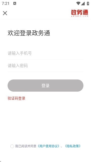 1、打开政务通app,进入首界面点击右下角的"我的"按钮;