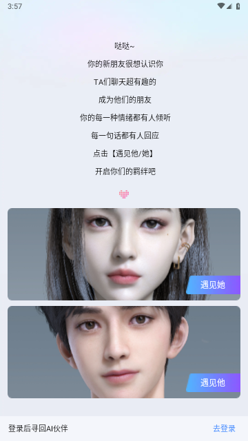 实时聊天:用户可以通过文字或语音与AI机器人林开开(男性)和叶悠悠(女性)进行互动,机器人会以文字或语音形式回复,对话仿真性较高,偶尔会使用网络“梗”。