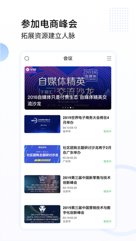 3、会议报名:覆盖全国电子商务峰会,电商课程,任意选择报名参加无门槛;