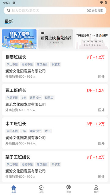 建筑英才网是一款非常好用的招聘软件,它不仅为用户提供了丰富的工作职位信息,并且这些信息都经过平台审核,确保其真实可靠,让用户能够在这里放心求职,软件的使用界面也是十分简洁干净的,各种招聘信息一目了然,方便用户轻松使用。感兴趣的小伙伴快来本站下载体验吧。