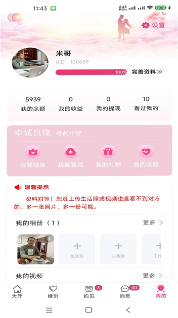 用户可以在这里与自己喜欢的用户进行视频聊天,可以更好的对对方进行详细的了解;