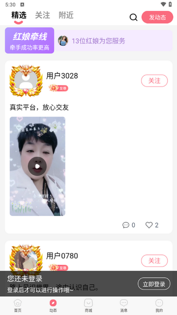 3、可以发布动态,分享自己的生活点滴和心情,吸引志同道合的人关注。其他用户可以点赞、评论,增进彼此的了解。