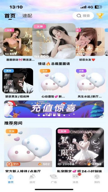 3、支持在线充值,并能获得平台惊喜福利,帮助用户能感受到更加交友权益,交友更高效;
