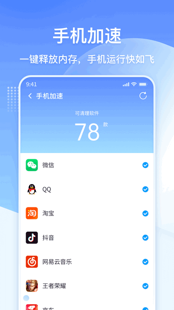 4、内存加速,一键清理缓存,轻松加速,告别手机经常卡的困扰