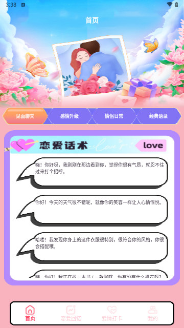 2、支持关键词搜索功能,用户可以输入话术关键词来搜索各种恋爱话术,学习交流技巧。