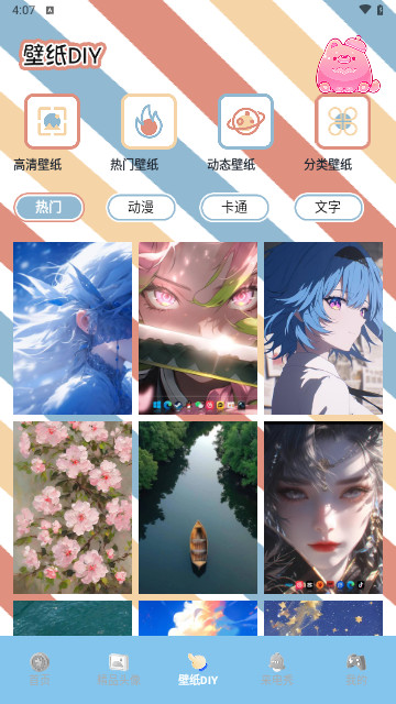 3、可进入到壁纸DIY页面中对各种各样的主题壁纸进行浏览选用。