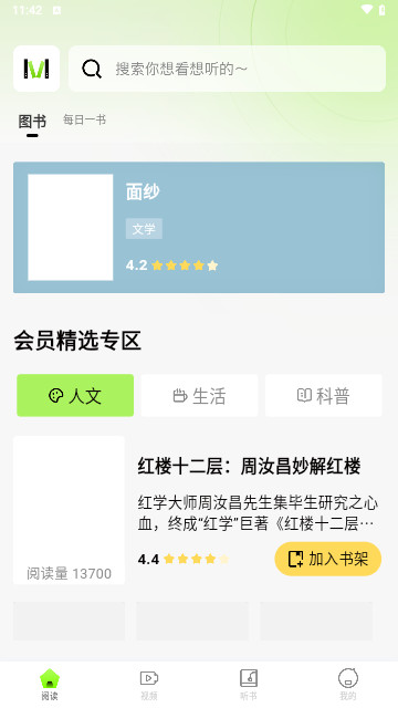 4、内置听书资源十分齐全,热门听书榜单查看。