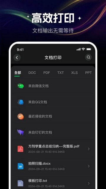 1、手机替代电脑,一键通过wifi连接打印机,即可支持万能打印的应用程序中将文档打印、图片打印、文本打印、照片打印和文件扫描等功能。