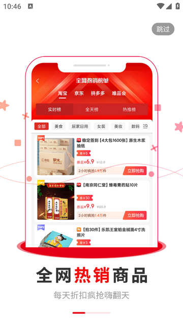 2、热销榜单:查看全网精选的热销商品榜单,轻松选购流行商品。