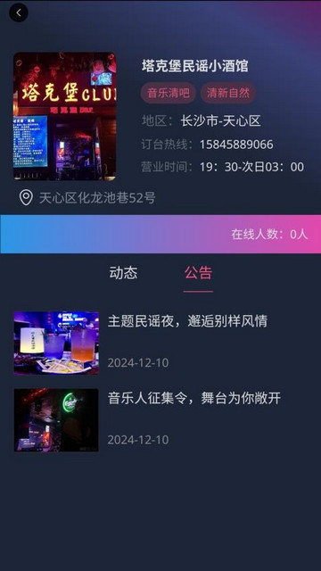 3、了解酒吧活动,知道酒吧营业时间和地址,便于选择性预订体验;