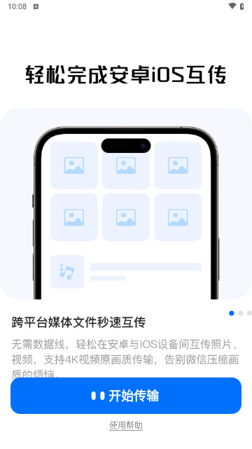 安卓转IOS这款传输服务软件深受用户们的满意,在这里用户们就只管传输自己所要的文件就好了,不会限速放心使用就好了,这里支持多种数据文件的迁移,满足不同用户的传输需求,轻松传输海量的数据文件,需要的朋友们不要犹豫快来下载进行传输文件服务。