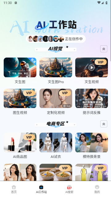 2、功能全面覆盖:涵盖AI绘画、文生视频、AI大模型对话等多种功能,一站式解决多种创作问题。