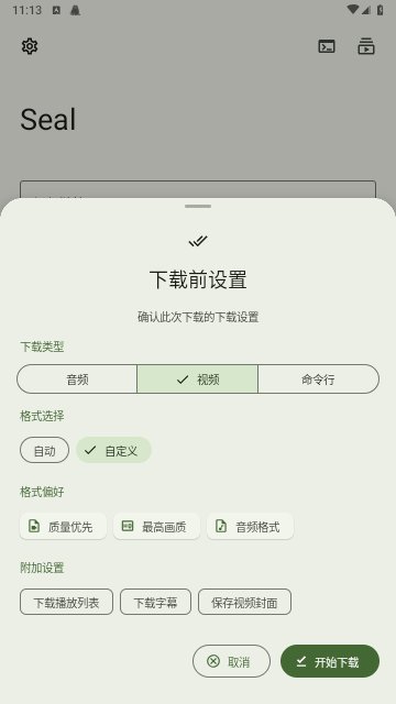 seal海豹下载器是一款手机下载工具,涵盖的数千个视频平台下载视频与音频,还能提取媒体元数据与专辑封面,并嵌入到音频文件中,同时支持播放列表下载、内嵌字幕于视频文件以及执行自定义的yt - dlp命令模板。需要的朋友们,快来下载使用吧。