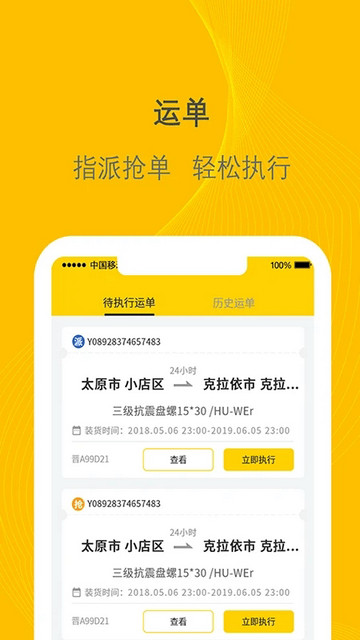 3、进入运单管理中心,查看待执行的运单列表并点击立即执行。