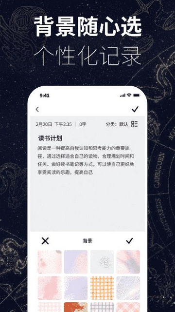 用户可以对便签备忘录的背景随心设置,这里多样化的背景都可以一键选择设置。