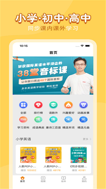 丰富的教材资源,让小孩们在学习之余也可以给孩子学习素质教育的内容,让他们的综合能力能够得到提高,面向全国小学生、家长及老师提供优质高清教学视频,课文朗读是软件重要的辅导内容正,在发音、咬字以及情感上达到高度统一,给孩子更好的课文诵读体验。