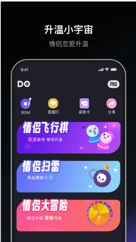 Dofm是一款专为情侣设计的多功能软件,界面简洁明了,操作简单,适合不同年龄段的情侣使用。软件提供了丰富的功能和服务,能够满足情侣在不同场景下的需求,无论是约会、家庭聚会还是办公室小憩,都能找到合适的功能来营造氛围,快来下载吧。