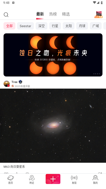 附近模块:用户可以查看附近的作品、找到附近的星友畅聊约拍,共同探索宇宙奥秘。