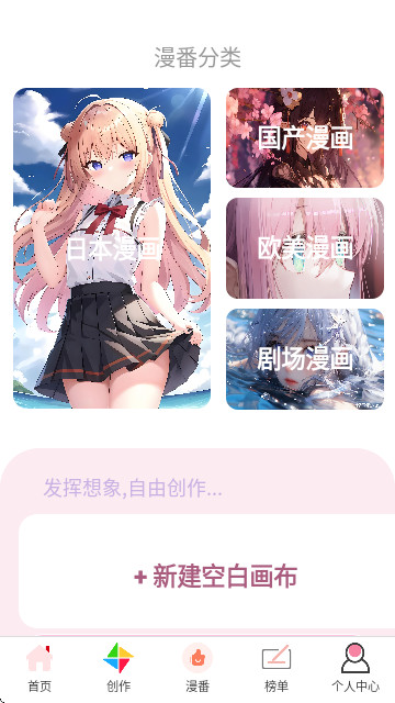 2、点击国产、日本、欧美或剧场分类,可快速找到自己喜欢的漫画作品类型;