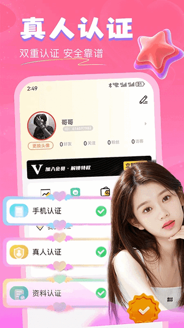 1、多重认证:包括手机认证、真人认证、资料认证等,确保用户信息真实可靠。