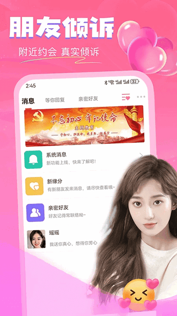 夕遇是一款专门为单身用户设计的脱单交友软件,用户可以根据自己的需求进行精准匹配,快速找到感兴趣的人,打破传统交友的局限。而且,软件还提供了语音聊天功能,通过语音直接与对方交流,让距离感瞬间消失,增加了沟通的亲密感。用户在注册时必须通过真实的身份认证,这样一来,不仅避免了虚假信息的困扰,还能让用户在与别人互动时感到更有安全感。
