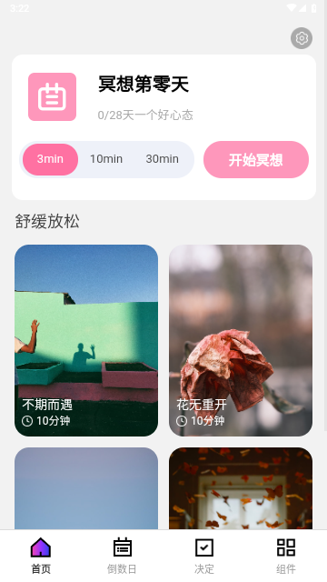 冥想时间设置:用户可以设定冥想时间,帮助培养冥想习惯并保持专注。