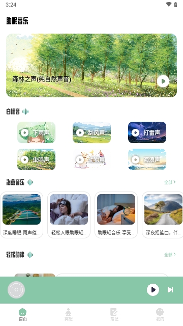 用户可以根据需要选择睡眠和冥想等类型的模式,相应的睡眠音乐资源。
