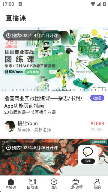 王国绘画学院app官方最新版是学习绘画的好平台,这里有众多的绘画课程可以选择和学习,能够查看详细的课程排期,讲师作品介绍以及课程的概述目录等,不仅可以看课程直播,还能看回放反复学习。感兴趣的小伙伴们,快来本站进行下载体验吧。